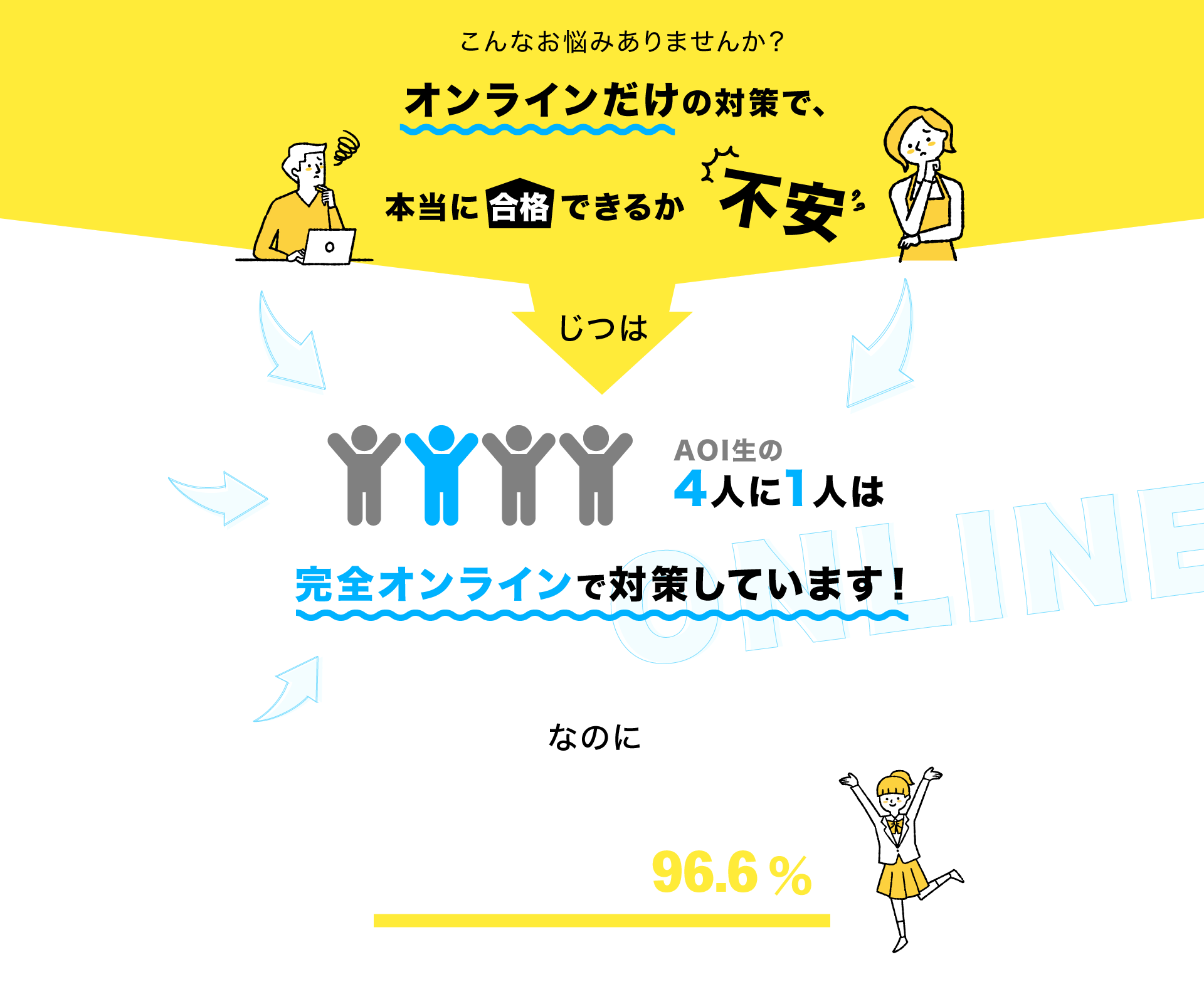 AOIは、最適化されたカリキュラムのもと、志望校合格に直結する学びを徹底的にしていきます。