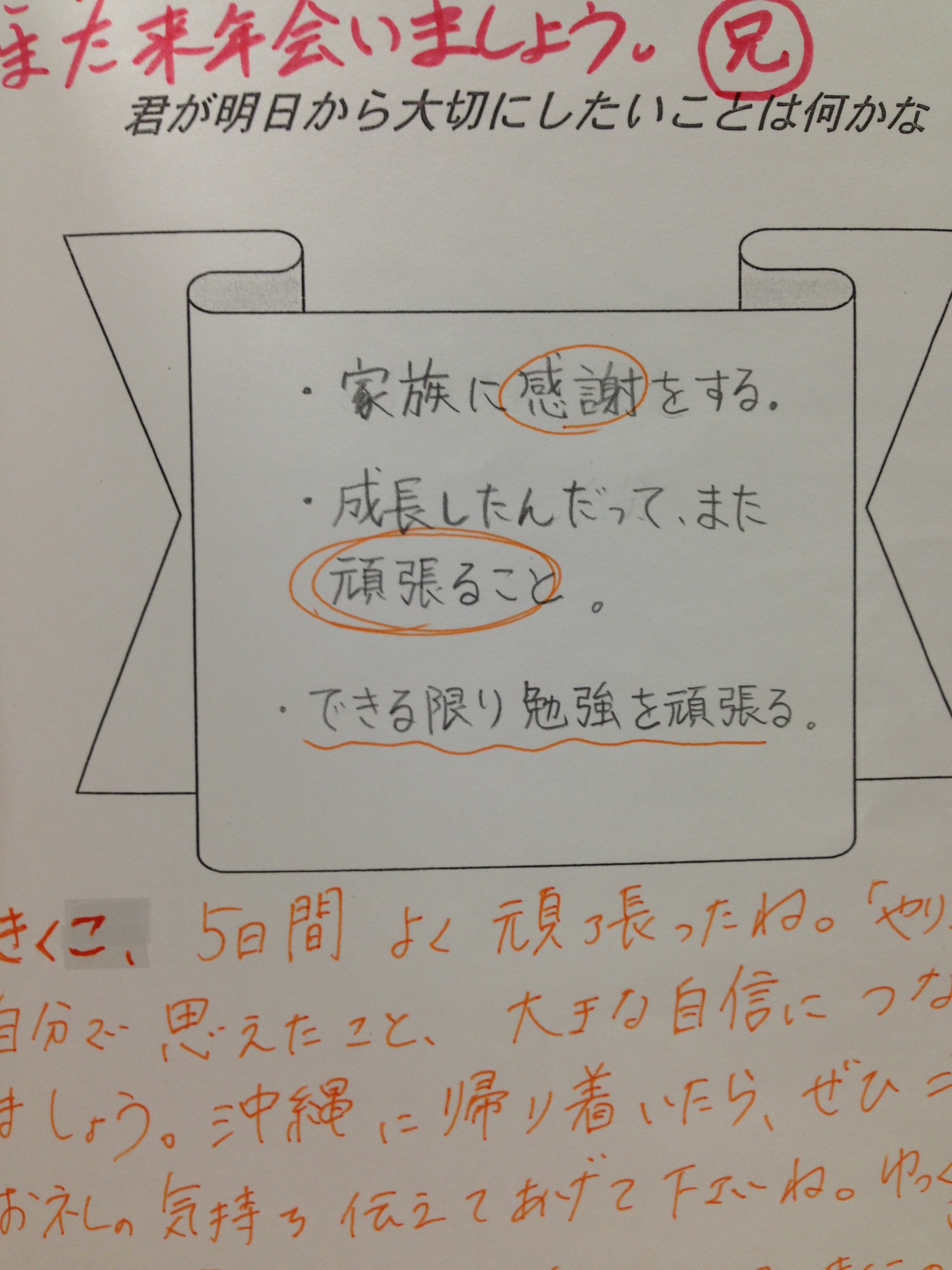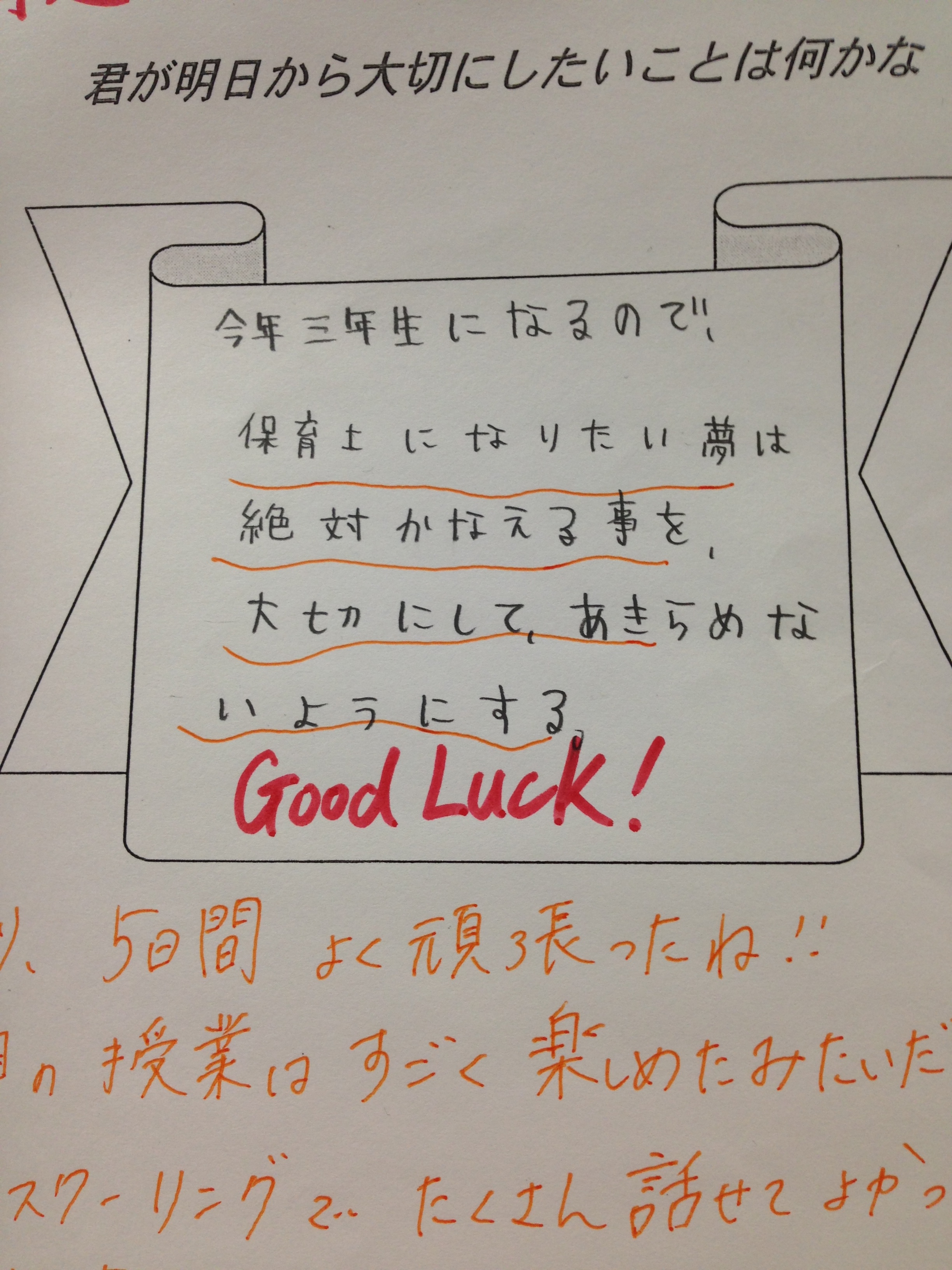 きっと5日間のスクーリングで大きく成長してくれたと思います。