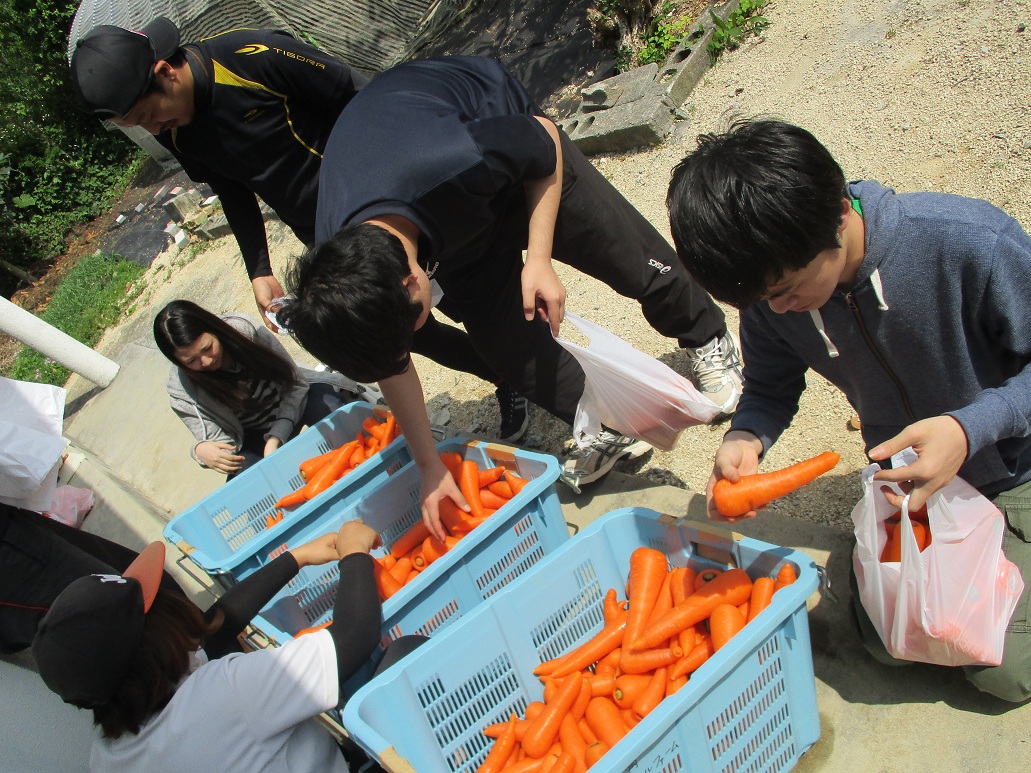 1400坪の広大な畑ですが、この時期はほとんど収穫を終えており、最後の収穫を生徒たちが頑張りました。