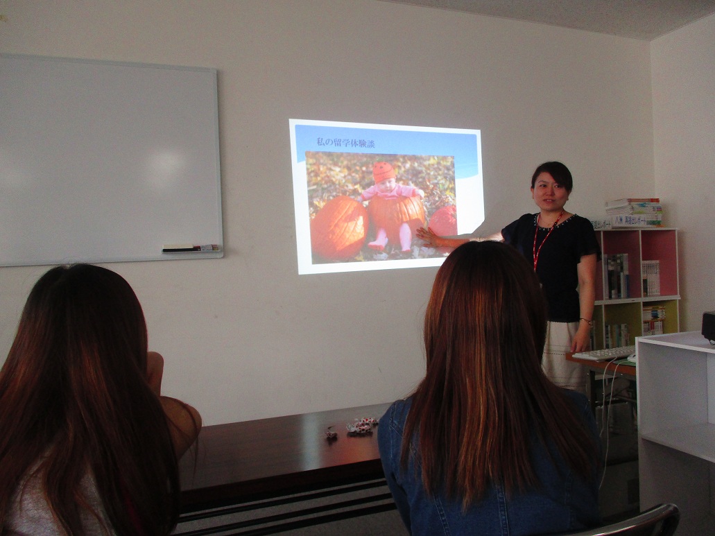 今日は、Wishインターナショナル株式会社の留学カウンセラーの松田さんをお迎えして、留学説明会を行いました。