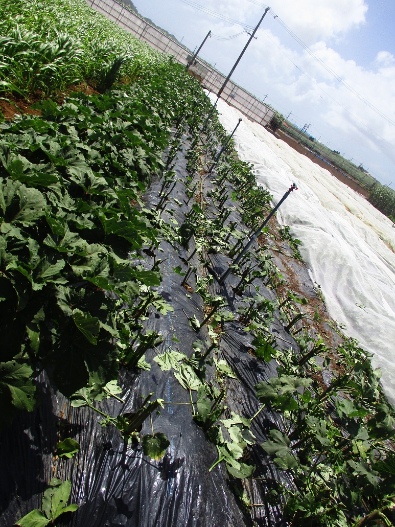 今月の農業体験は、オクラの収穫と台風対策!!