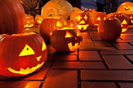 イメージして、カボチャに下書きし、型を切り抜いて作成します(^^♪