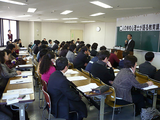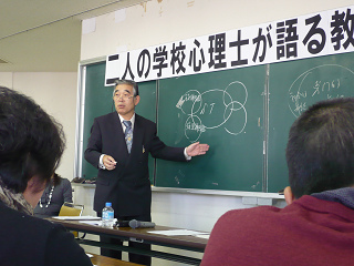 櫛田先生のお話には、現在まで学校心理士として受けた約1000件の相談事例の中から、様々な形の不登校に接してこられた経験談などを元に非常にわかりやすくお話しいただきました。会場からはしきりにうなずく方が多く見られ、多くの方がご自分のお悩みを理解して下さる方が目の前におられることにホッと安堵の表情を浮かべられていました。