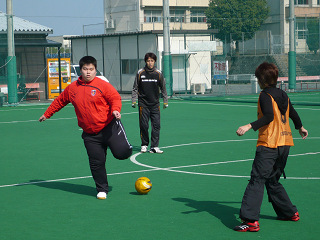 軽い(?)ストレッチ後にまずはパス練習。と言いますか、「インサイドで正確にしっかり蹴る練習」といった方が正確かもしれません。とにかくコーチの的確な指示とノリの良さ(?)で、練習にリズムが出てきました(^_-)-☆なんだかポンポン動けるというか・・・ホントやりやすいんですよ~!(^^)!