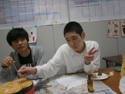 そして、T君の作ったたこ焼きを、待ってました言わんばかりに狙うJ君