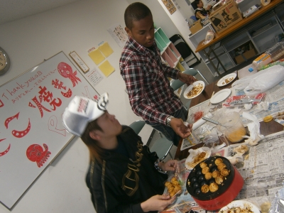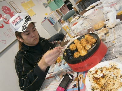 最初は慣れない手つきで、たこ焼きもグチャグチャのでしたが…
