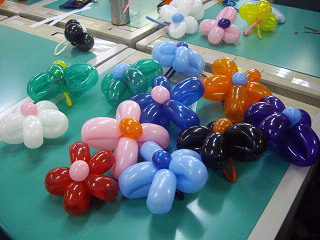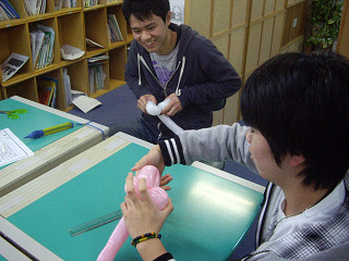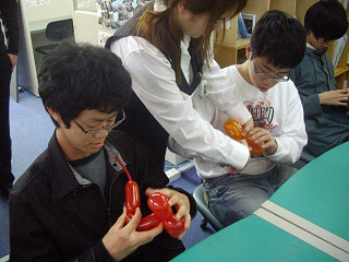 男子も女子も、みんなで一緒になって一生懸命バルーン作りを進めていきました。
