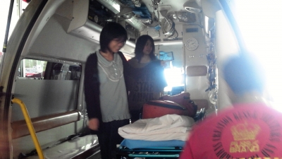 普段は乗ることのできない救急車の中も見学