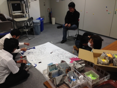 そんな教室では、3週間後にせまった卒業式の準備で在校生が壁画制作に取り組んでいます。
