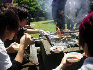 バーベキューが始まると、もう男子も女子もコンロに群がって