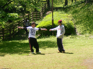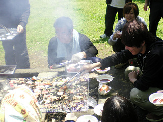 まずは、小野先生、安本先生がバーベキューの一番の大仕事、「火おこし」をしてくれました!!