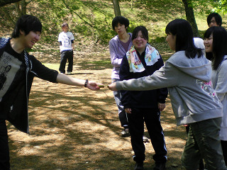 生徒会が中心となって考えた「宝探しゲーム」では、3チームに分かれて広場のいろいろなところに隠されたメッセージカードを探して…