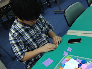 今、教室では、生徒たちがレポート授業の合間をぬって、折り紙の「あじさい」作りに一生懸命取り組んでいます。