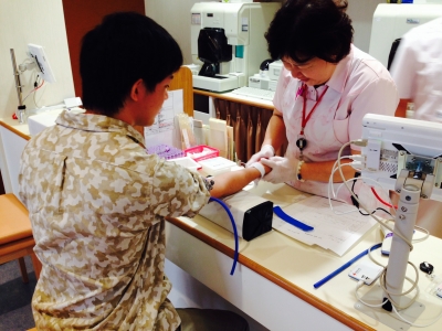 教室から徒歩10分の献血ルームへ行き、まずは検査前の自己申告から!