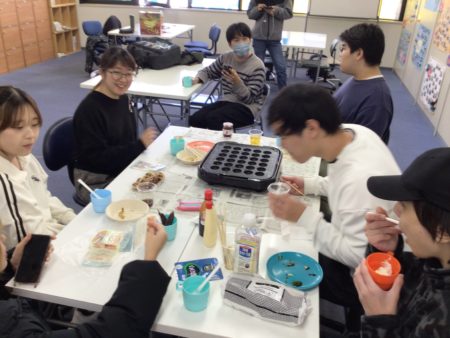 みんなで材料をかき混ぜ、焼いて、ひっくり返して、、、美味しくいただきましたね!中の具材はタコだけでなく、ウィンナーやチョコの入ったものもありましたよ!